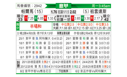 [意甲] 帕尔马vs尤文图斯