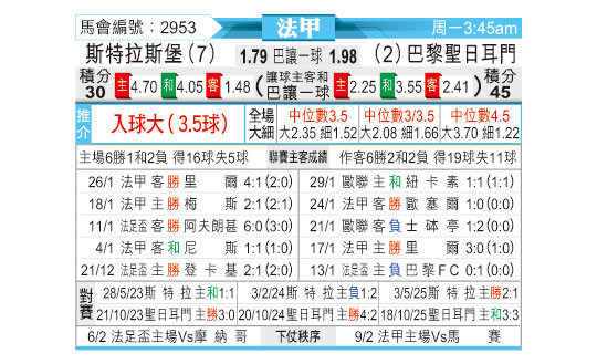 [法甲] 斯特拉斯堡vs巴黎圣日耳曼
